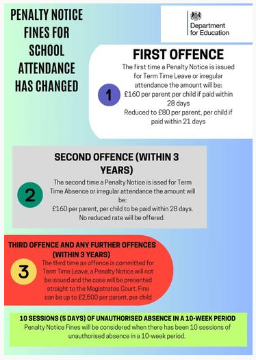- There will be stricter penalties for unauthorised absences. Parents may face fines or other legal actions if their child has a significant number of unauthorised absences.