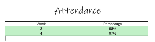 Thank you for your continued support in making sure your child attends school regularly and arrives on time. Together, we can help every student reach their full potential.